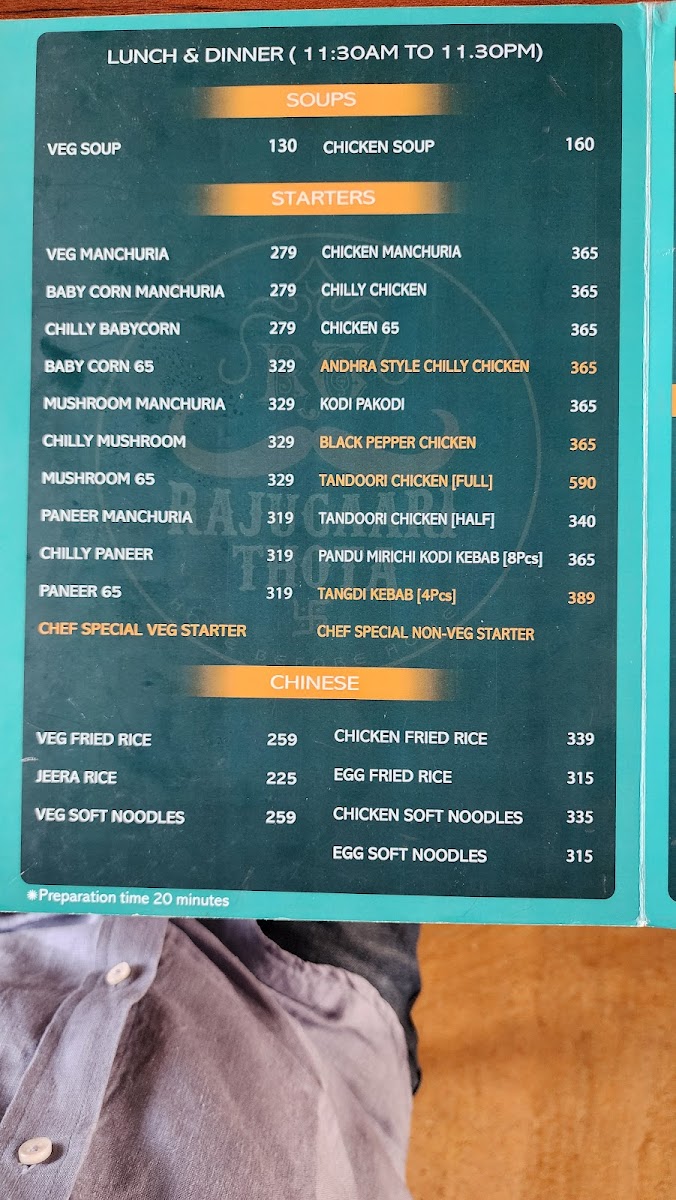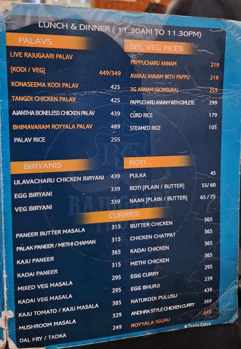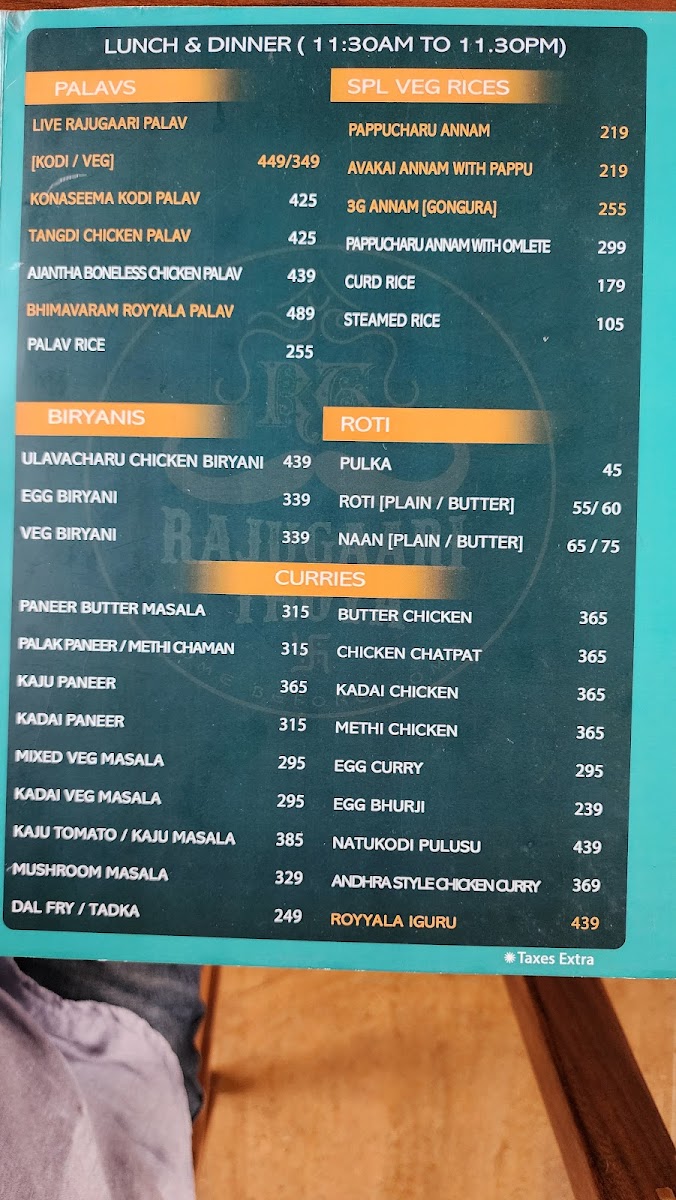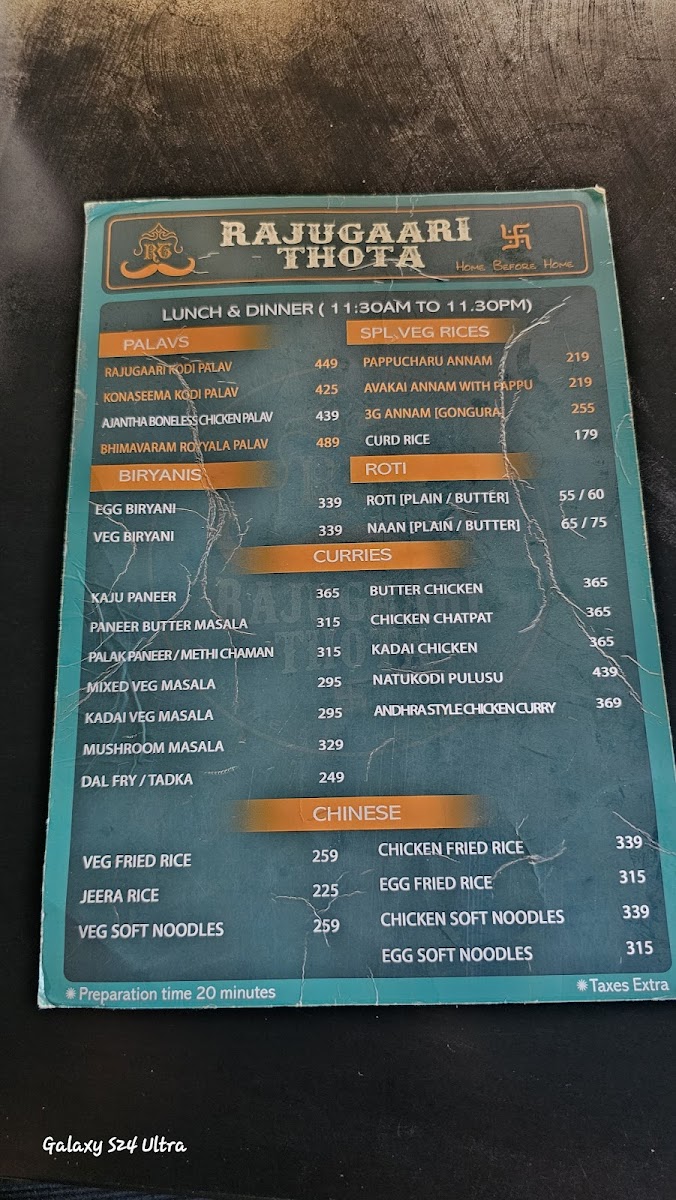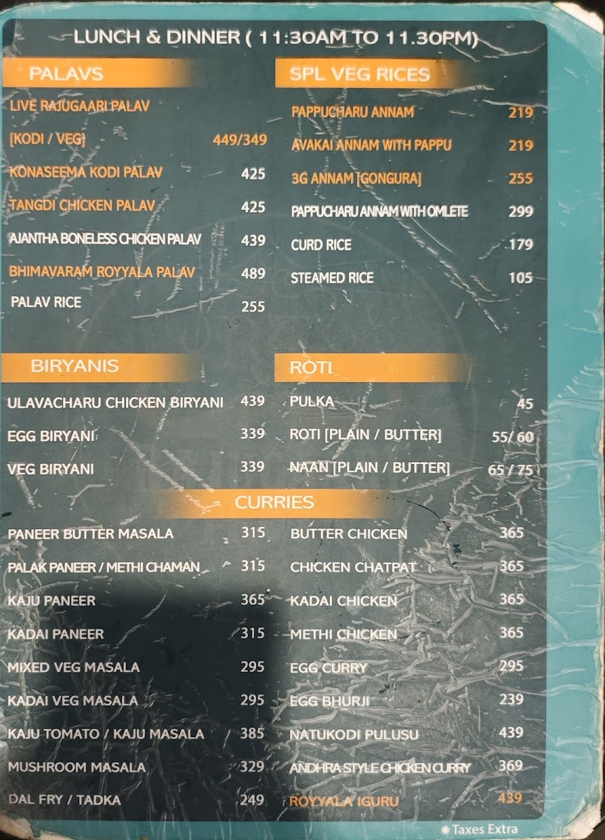The beverage options are equally compelling, featuring everything from classic Filter Coffee to refreshing Green Tea. Save room for desserts like Gulab Jamun and the chef's special, each providing a sweet finishing touch to your meal. Rajugari Thota Hotel is not just a stopover; it’s an experience that celebrates the rich culinary heritage of the region.